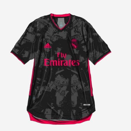 El tercer uniforme sí que rompe con todo el estilo usado por el Real Madrid, con una jersey negra y que usa tonalidades en gris, también con un estampado al estilo "safari".