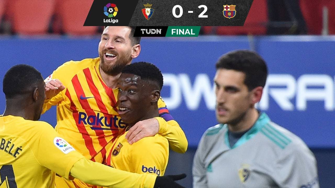 Barcelona ganó un partido vital de visita ante Osasuna y se puso a dos puntos de Atlético de Madrid gracias a una brutal asistencia de Messi para gol de Alba, y el debut goleador de Ilaix Moriba.