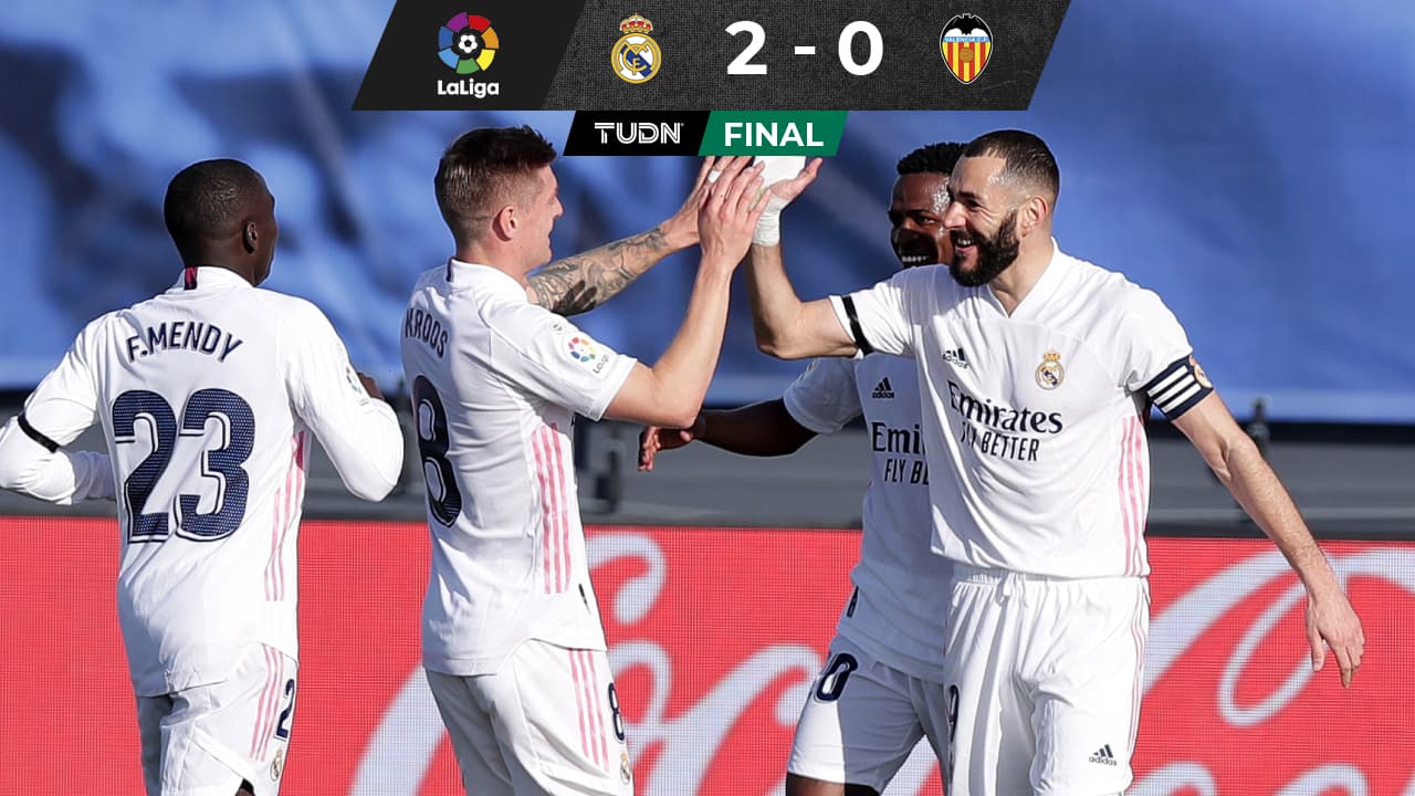 El Real Madrid regresa al subliderato tras vencer 2-0 al Valencia con anotaciones de Karim Benzema y Toni Kroos en la jornada 23 de LaLiga de España, juego en el que recuperó y volvió a perder a Dani Carvajal que regresa a la larga lista de lesionados del conjunto Merengue.