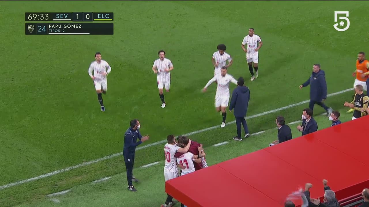 Entre dudas de su estado físico por posible lesión, Tecatito salió de cambio por Rafa Mir al minuto 60 y diez minutos después, al 70', el 'Papu' Gómez encontró la anotación para abrir el marcador.