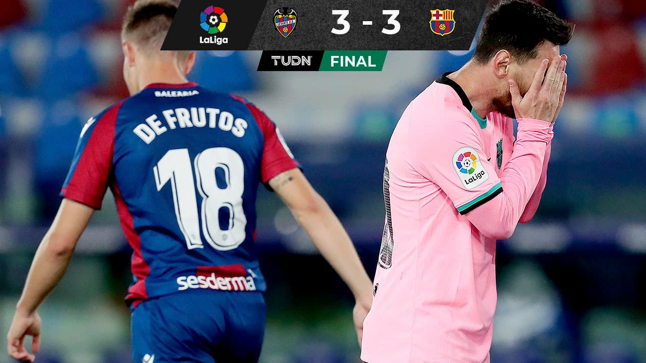Barcelona no pudo conservar la ventaja que llegó a tener hasta en dos ocasiones ante el Levante y tras firmar un empate a tres goles, prácticamente se despidió de la posibilidad de ganar el título de LaLiga.