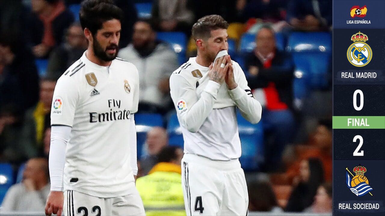 No pudo ser peor el arranque del año para el Real Madrid en la Liga de España. Tras empatar el partido aplazado ante el Villarreal a mediados de esta semana, el equipo blanco jugaba hoy en el Santiago Bernabéu ante la Real Sociedad, necesitado de una victoria pues se encontraba a siete puntos del Barcelona, líder del torneo.