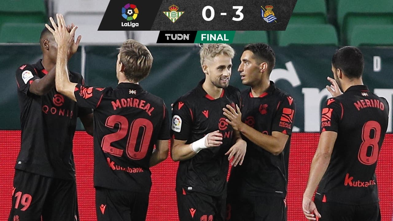 La primera mitad fue muy táctica con dos equipos que se respetaban mucho, aunque las mejores ocasiones de gol llegaron del lado visitante y fue Portu el que tuvo el premio, mientras que en la segunda el Betis nunca supo cómo meterle el diente al partido y tuvo que rendirse ante la buena actuación de los donostiarras, que redondearon el marcador con un rotundo 0-3.