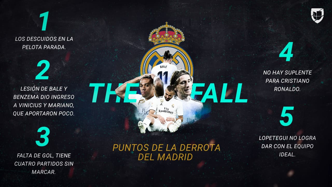 El Real Madrid no tiene poderío ofensivo, extraña más que nunca a Cristiano Ronaldo luego de una falta de puntería atroz, no importa quién esté en el ataque, los merengues no generan peligro y eso lo dejaron patente tras perder, al 95’, ante el modesto Alavés con gol de Manu García. Los blancos viven una crisis de resultados que podría cortar el proyecto de Julen Lopetegui.