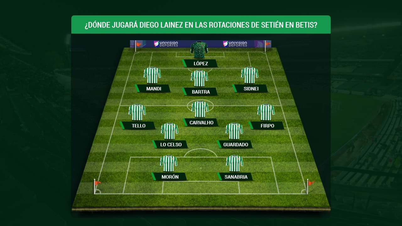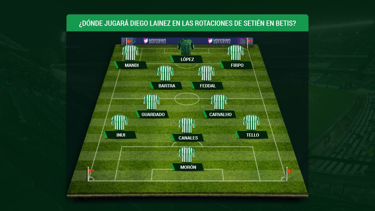 En el derbi sevillano, Setién formó con un 4-2-3-1, parecido al de Miguel Herrera con América, donde el mexicano Andrés Guardado y el portugués William Carvalho hicieron el 'doble pivote' de mediocampistas. Aquí, el japonés Takashi Inui cumplía el rol de Lainez como extremo por uno de los costados.