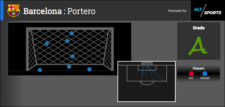 Las pocas aproximaciones a la portería de Bravo fueron resueltas con rapidez por el portero chileno. Bravo atajo los siete tiros del Madrid (las atajadas demostradas por los círculos azules), incluyendo una gran salvada a un cabezazo de Cristiano Ronaldo en los últimos minutos del partido y manteniendo su portería imbatida hasta el final.