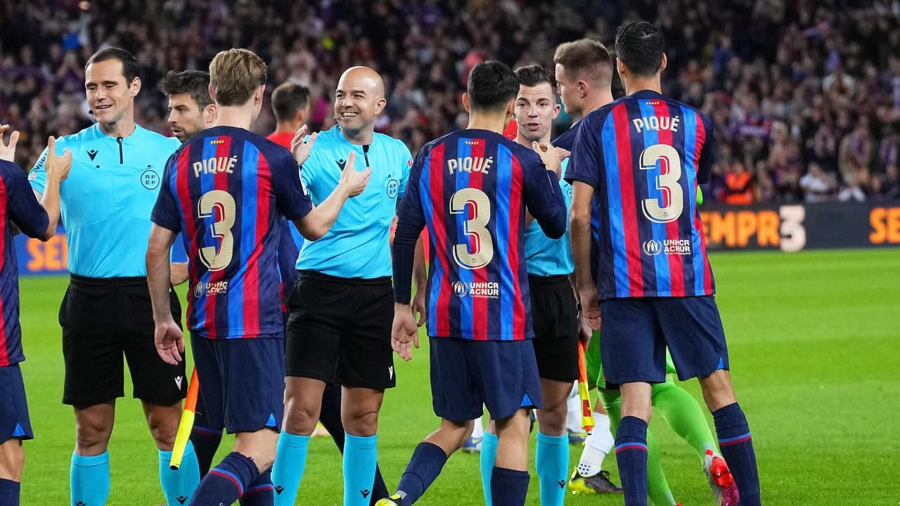 Jugadores del Barcelona realizan homenaje a Gerard Piqué en su último partido con el Barcelona