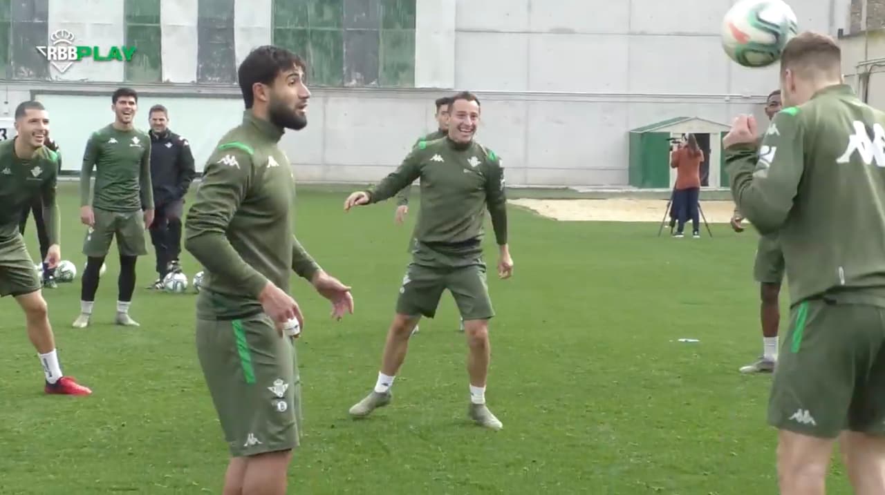 El mediocampista mexicano se mostró feliz y participativo tras su reincorporación a los entrenamientos con el Real Betis.