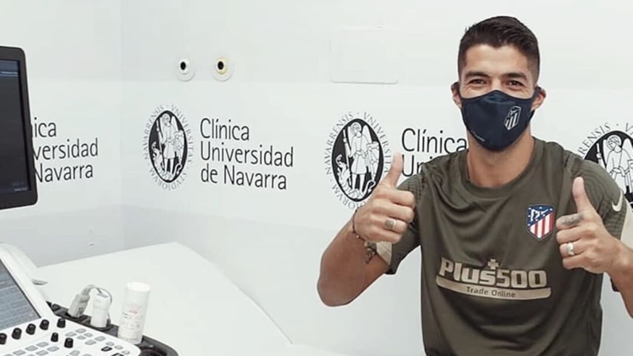 El uruguayo Luis Suárez nuevo delantero del Atlético de Madrid, llegó a la capital de España y pasó el pertinente reconocimiento médico, previo a la formalización de su fichaje y a la firma del contrato que le unirá en principio por dos temporadas al conjunto rojiblanco, procedente del Barcelona.