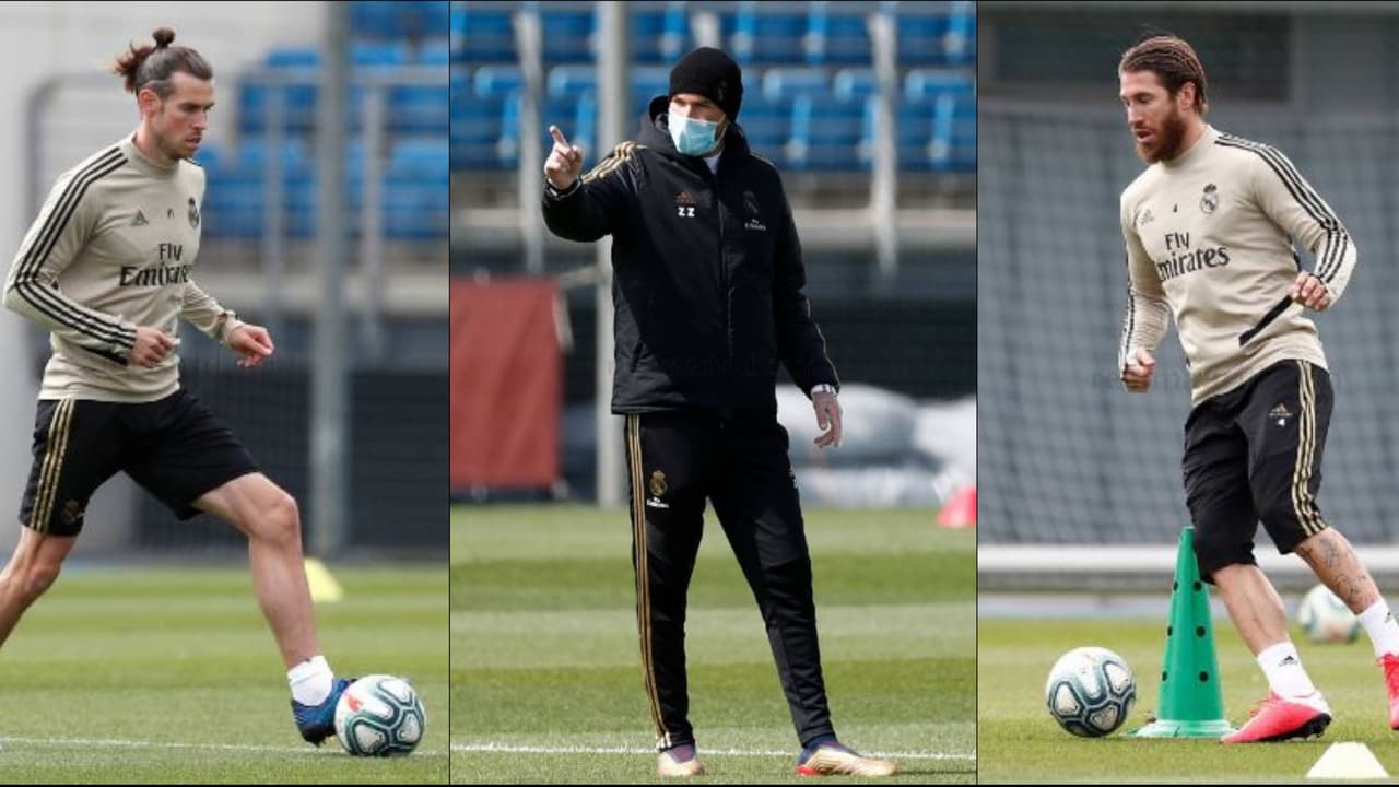 En las escenas del campo, se vio a Zinedine Zidane siempre con un cubrebocas, mientras que jugadores como Sergio Ramos, Eden Hazard y Gareth Bale lucieron en buen estado físico y con alegría de regresar.