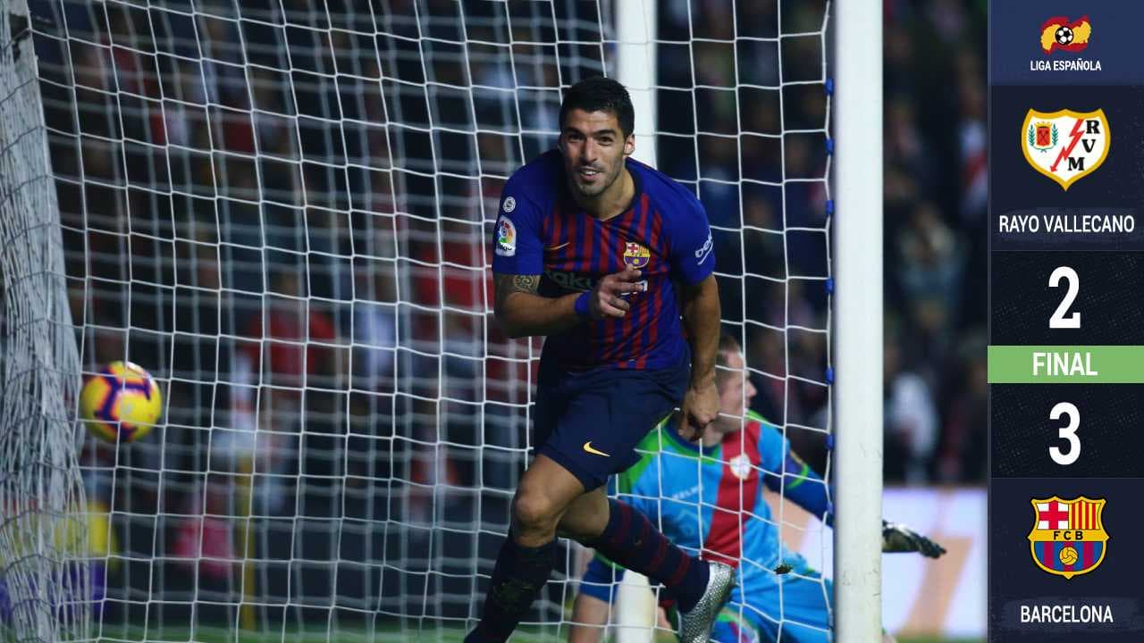 Un doblete de Luis Suárez evita la sorpresa del Rayo Vallecano en La Liga