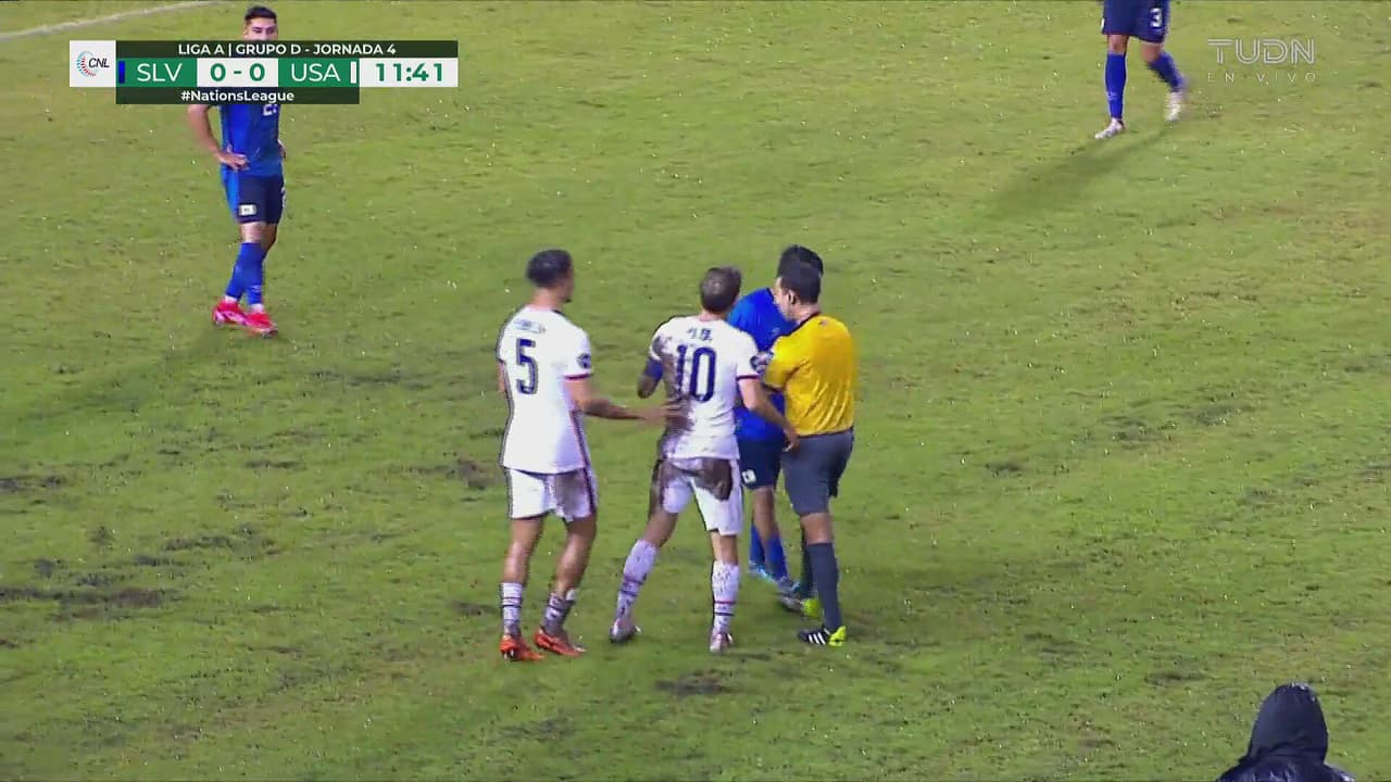 El ‘10’ de Team USA reclama al árbitro tras la jugada en la que se fue al césped al 12’.