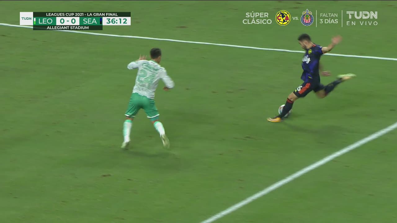 El ‘7’ habilitó a la llegada por la derecha del ‘16’, quien metió disparo apenas por encima del marco al 36’.