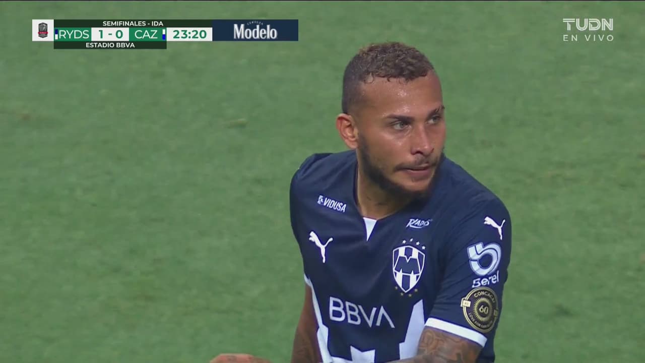 El delantero de Monterrey toma la pelota y saca un disparo, pero no fue correcto, al 24’.