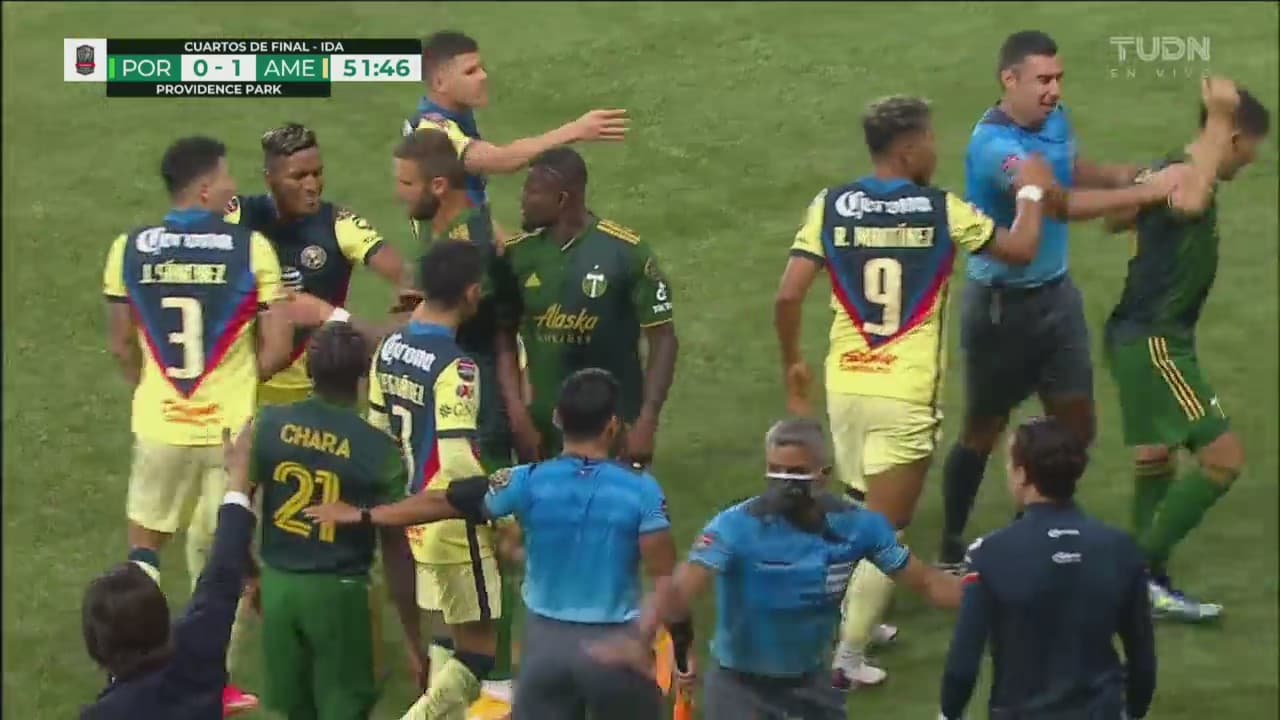 Las Águilas volvieron a sufrir con lo ríspido y lo rudo que se tornó el partido ante la ineficencia del árbitro por mostrar las tarjetas e incluso expulsar a los jugadores del Timbers que tundieron a los jugadores azulcremas.