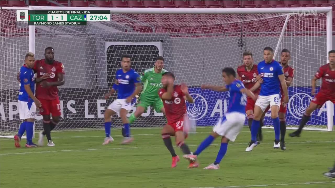 Cruz Azul reclamaba por una mano del jugador de Toronto ante el disparo de Rafael Baca al minuto 27.
