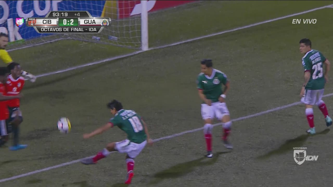 Fue hasta el final que Alan Pulido se 'fabricó' una buena jugada individual, centró la pelota y Macías la mandó al fondo para ampliar la ventaja que pone a Chivas con un pie en cuartos de final.