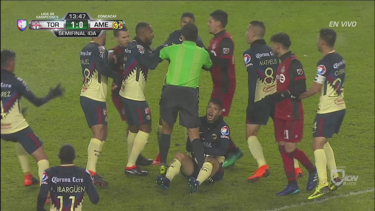 El árbitro principal, Henry Bejarano, decretó pena máxima por una falta cometida por Edson Álvarez sobre el italiano Sebastian Giovinco, a los ocho minutos de iniciado el encuentro. La decisión generó polémica y reclamos de los jugadores americanistas hacia el silbante que seguía de cerca la jugada.