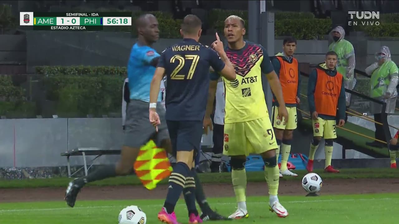 El jugador del América empujó por la espalda al de Philadelphia, quien se levantó enseguida a buscar pelea.