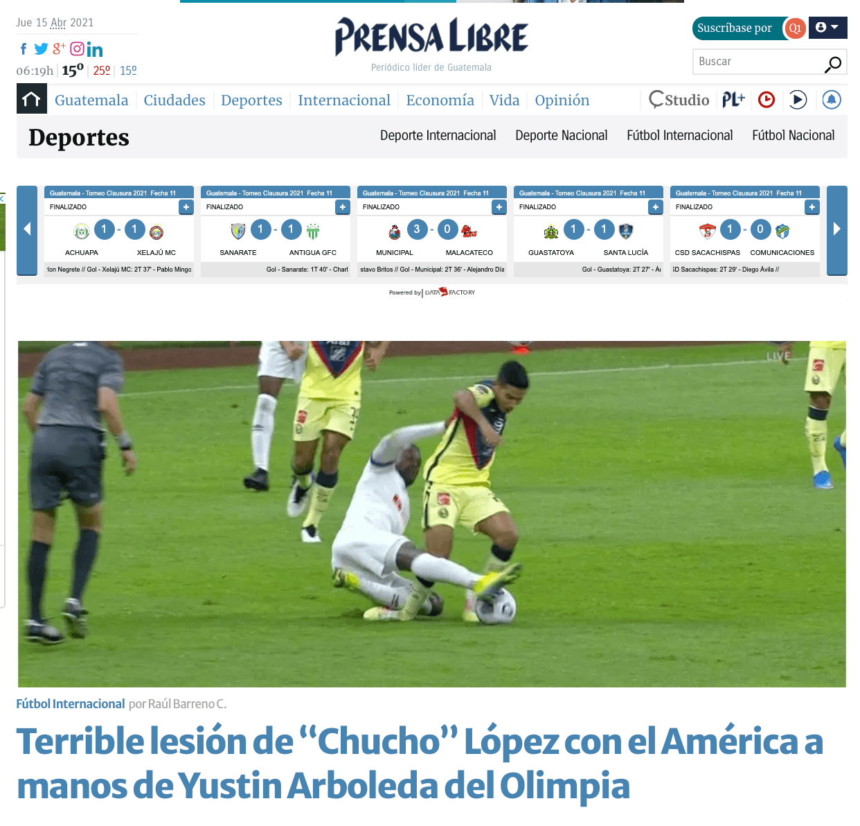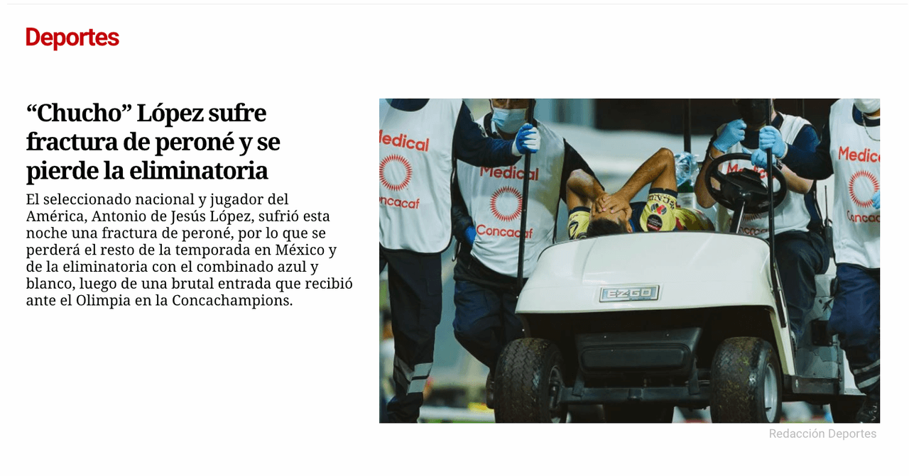 De igual manera, el diario Prensa Libre contó lo sucedido con López y catalogó de “terrible” la lesión sufrida por López.