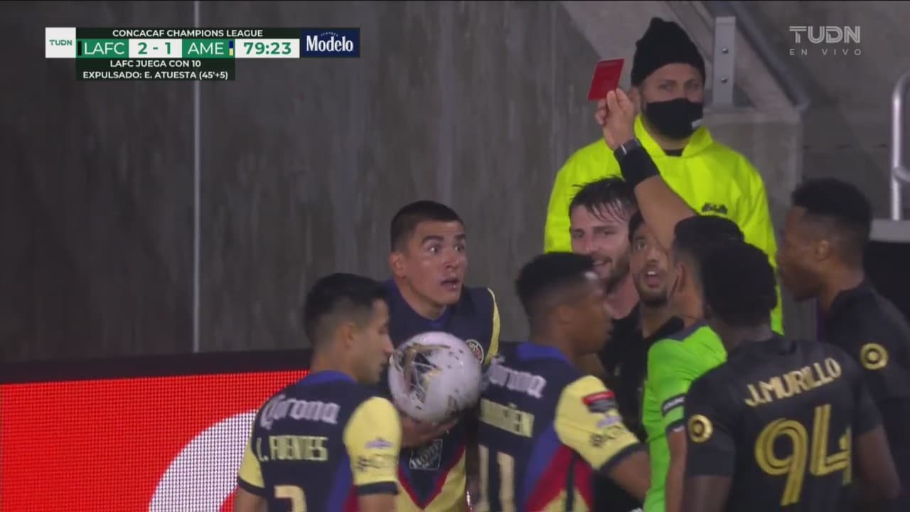 El lateral del América entró con una barrida sobre el ‘9’ del LAFC cuando estaba en la banda al 79’.