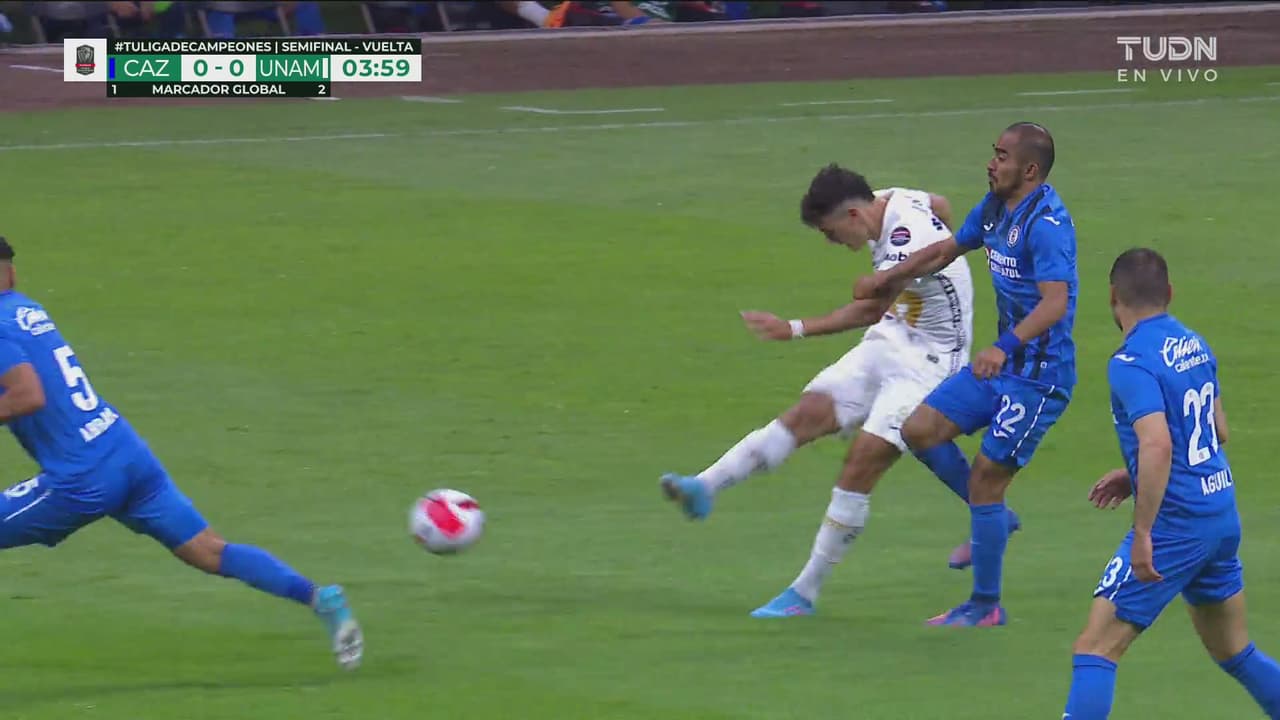 El balón le quedó botando al ariete de Pumas en las afueras del área y de inmediato probó a Jurado.