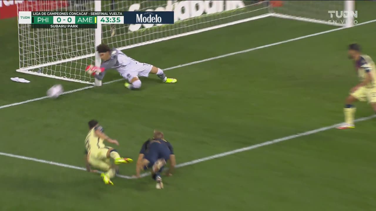 Gran cabezazo del delantero de Philadelphia, pero el arquero de América salvó perfecto al 43’.