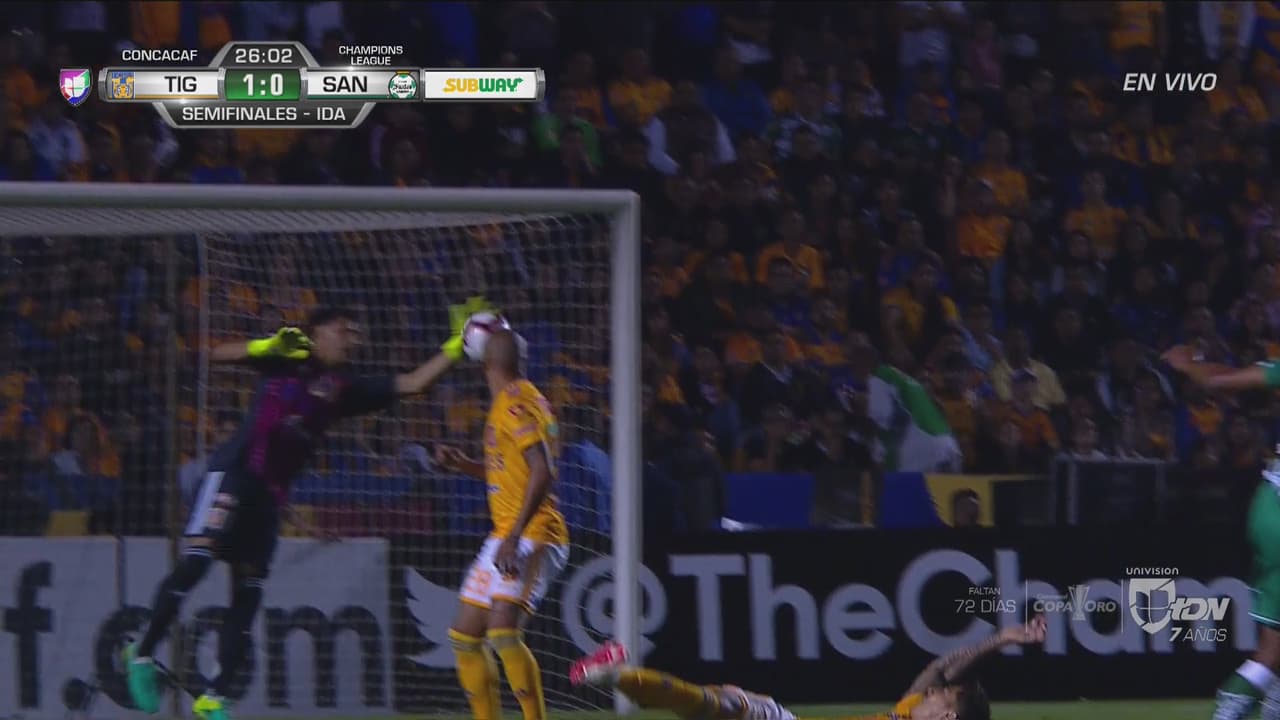 El ‘Patón’ dio una muestra de su categoría con un lanzamiento notable luego de un violento disparo de derecha del ‘10’ de Santos Laguna.