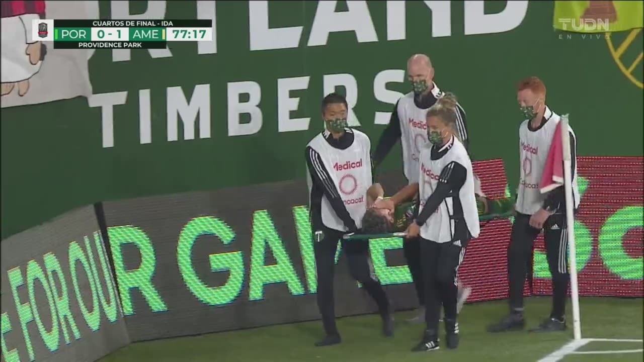 El jugador de Timbers disputaba el balón con Richard Sánchez y termina en el suelo, al 77’.