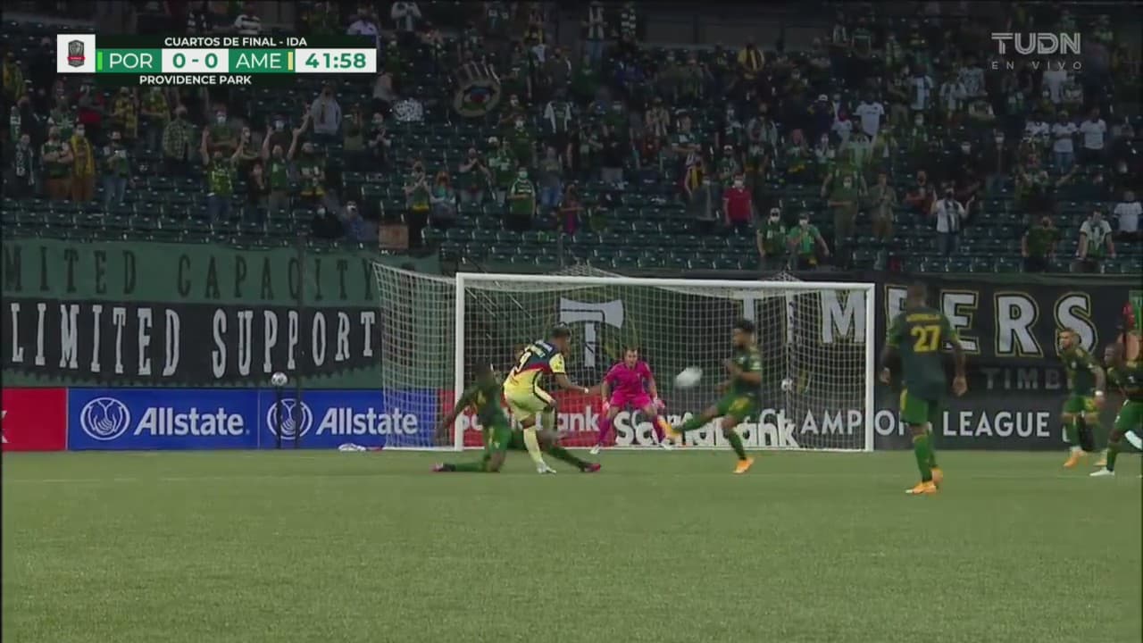 Roger Martínez insiste y su disparo se va desviado ante Timbers