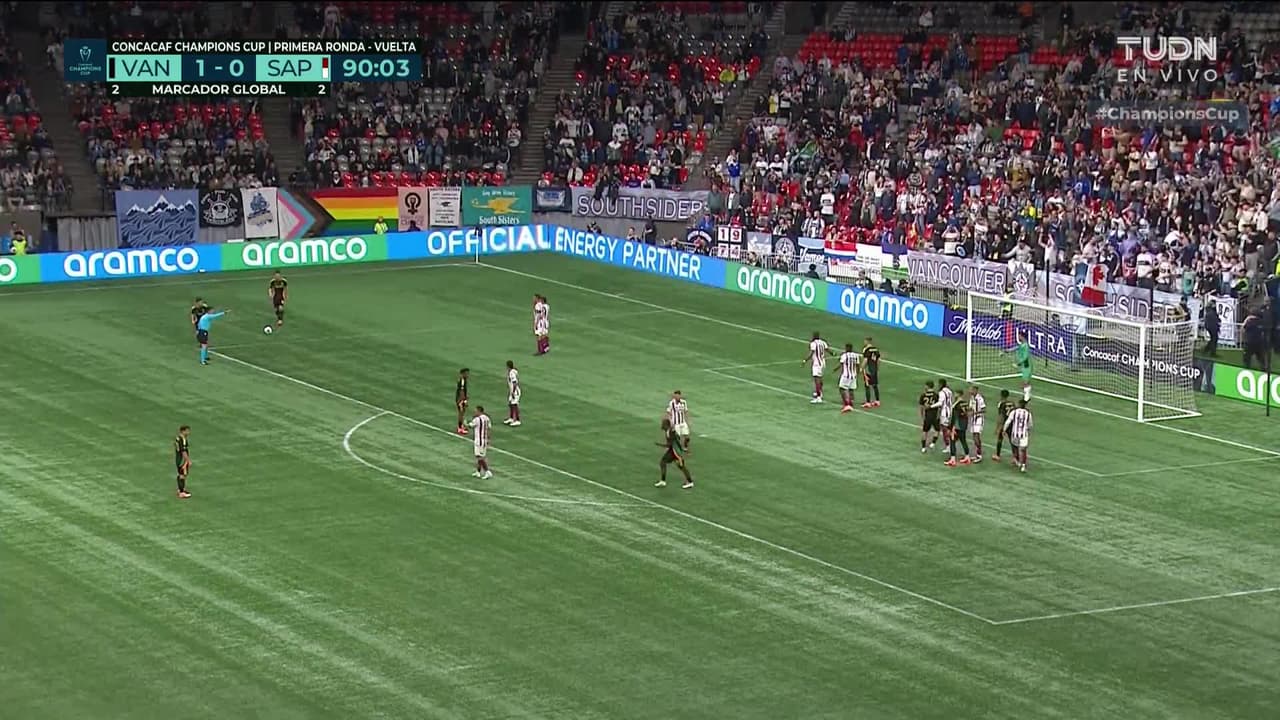 Tiro atajado al ángulo superior derecho. Brian White (Vancouver Whitecaps) Disparo con la derecha desde muy lejos por la izquierda y en posición complicada.