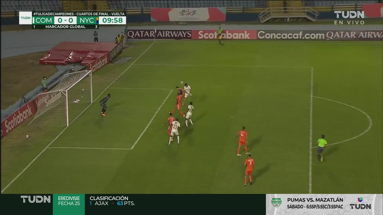 El defensor del Comunicaciones mandó su cabezazo por encima de la portería al minuto 9.
