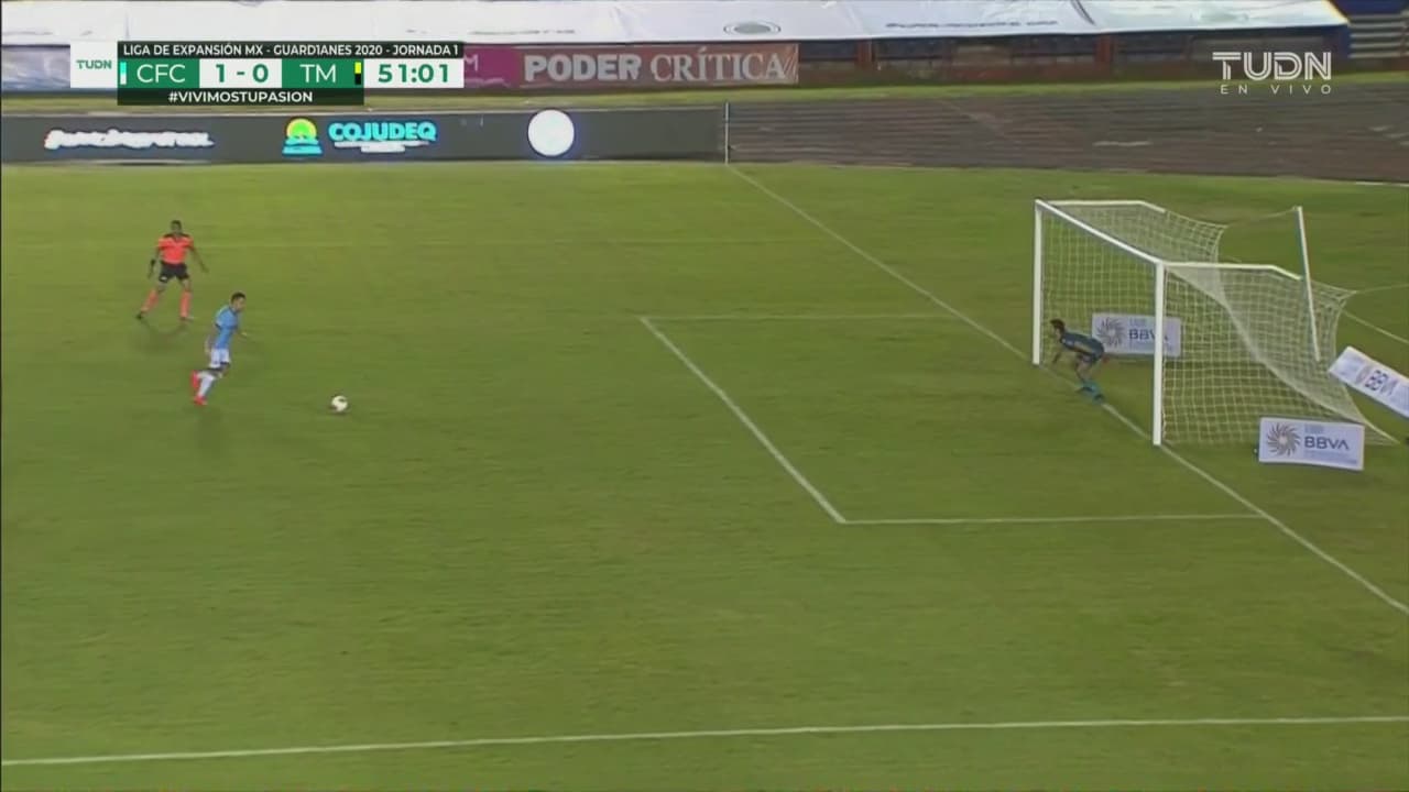 De nueva cuenta el chileno tuvo la oportunidad mano a mano frente al portero, ahora en una jugada en la que ganó la espalda al defensa, pero Díaz mandó su disparo por un lado y se perdió otra vez el gol para Cancún FC.