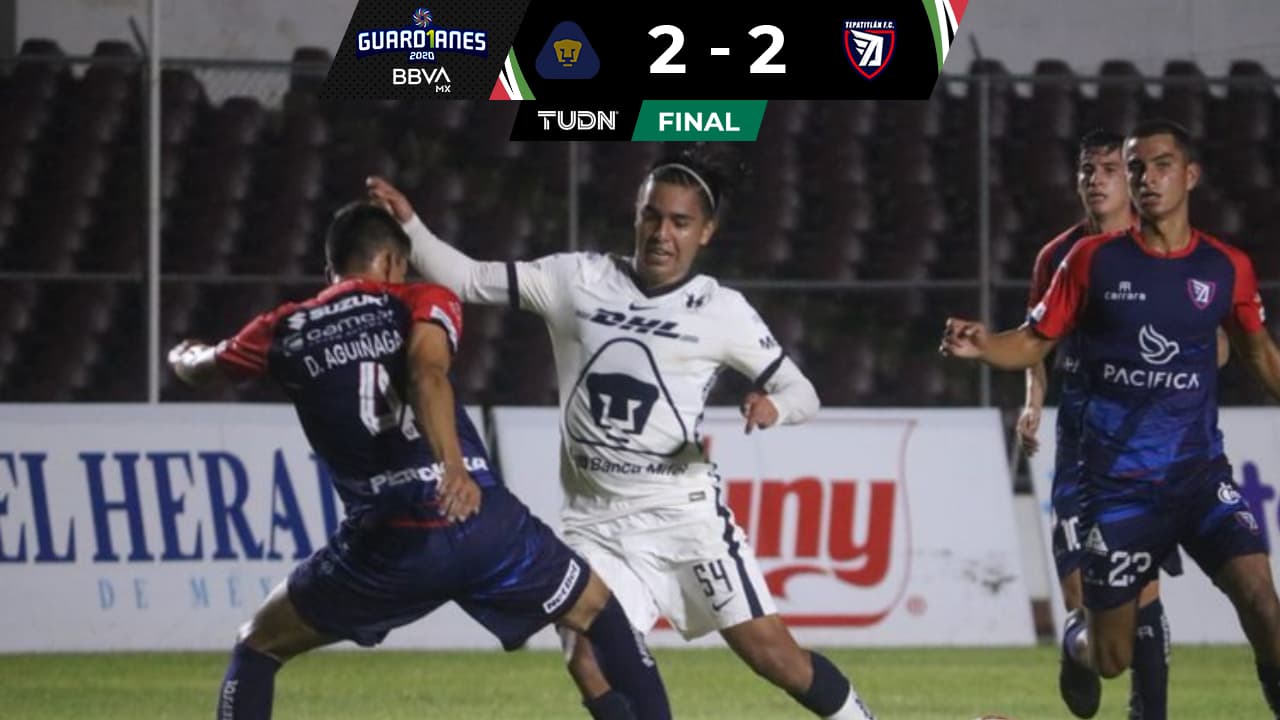 Los goles del cotejo fueron obra de Bryan Mendoza (26') y de Alejandro Zamudio (50'), para darle la ventaja a los de la UNAM, pero Tepatitlán entendió todo y modificó para que al segundo tiempo pudiera igualar con las anotaciones de Juan Angulo (71') y Edson Rivera (86').