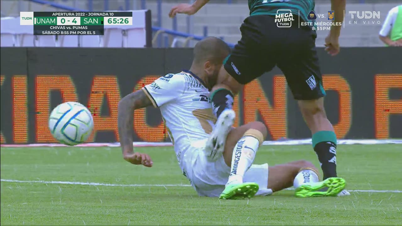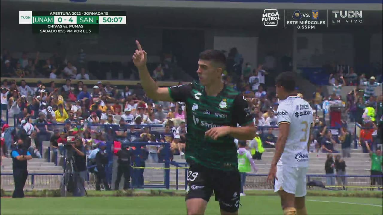 En el complemento vino otro gol anulado para Santos y Pumas creyó salvarse, pero no duró mucho el respiro porque Juan Brunetta marcó el cuarto gol para los norteños.