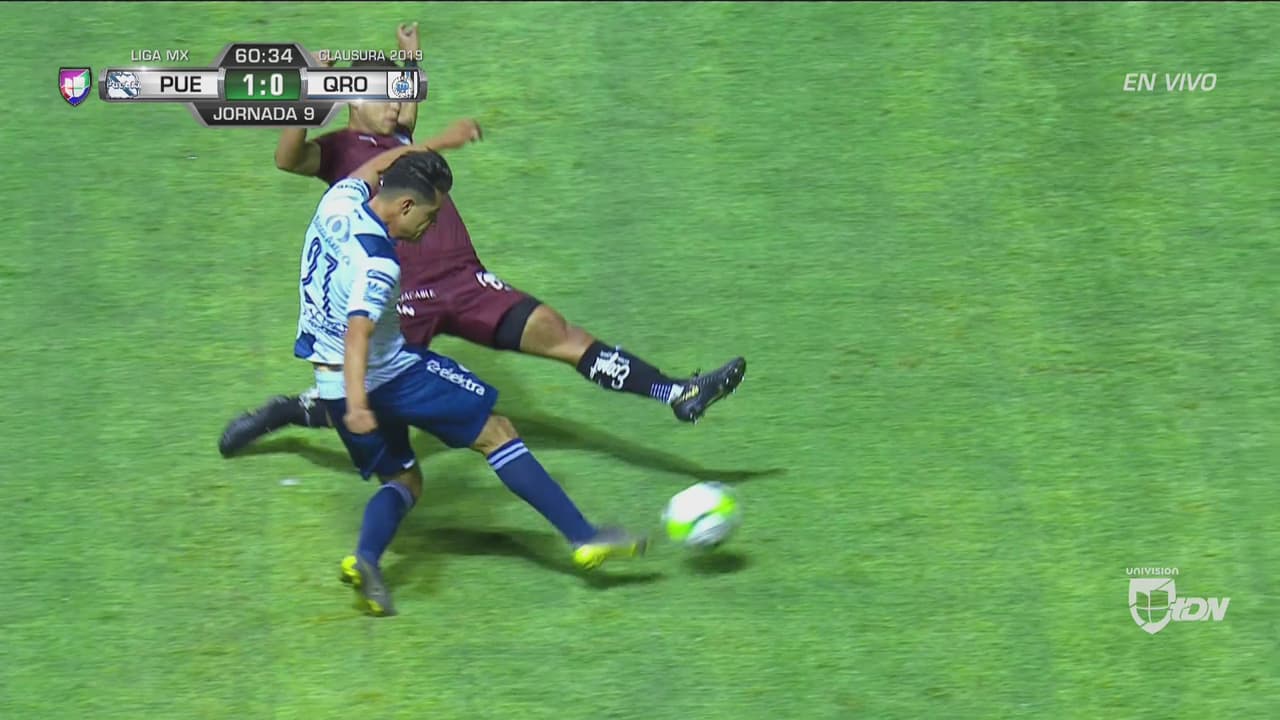 Le faltó calma al atacante del Puebla para darle buena dirección a la bola.