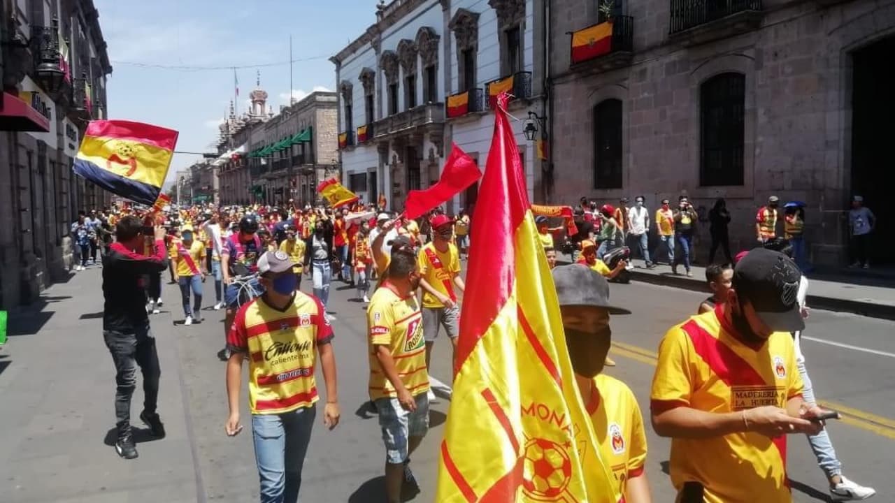 Con banderas, bombos y platillos, la afición de Monarcas Morelia se manifestó por las calles del centro de la capital michoacana debido a la posible desaparición del equipo.