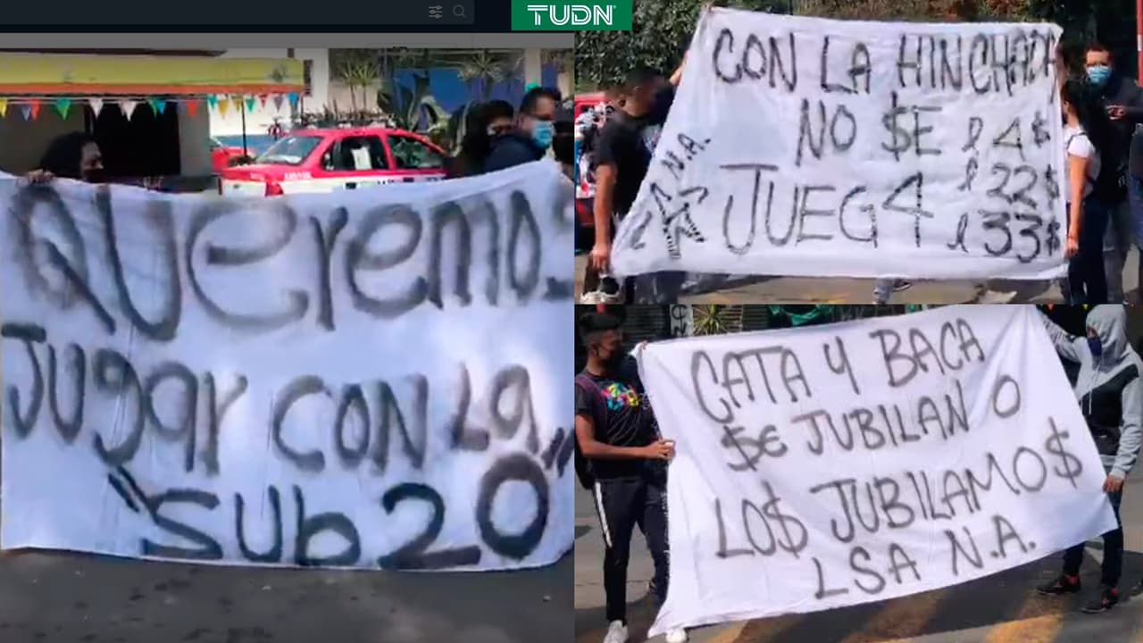 Adrián Esparza Oteo, colaborador de TUDN adelanta la información sobre las pancartas y mantas con las que se presentaron estos aficionados a las instalaciones de La Noria en donde además amenazan a los jugadores.