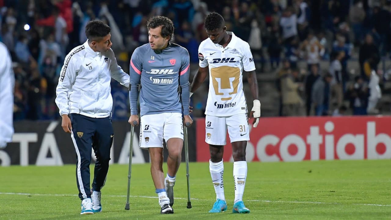 El defensor mexicano de los Pumas está en el Estadio Olímpico Universitario ya sin las muletas y esperando recuperarse del esguince de ligamento colateral en la rodilla izquierda para entrar en la convocatoria para la final de la Liga de Campeones de Concacaf.