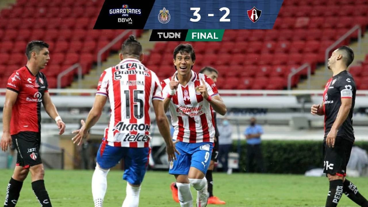 Las Chivas ganaban 3-0 al minuto 85 con goles de Uriel Antuna, J.J. Macías e Isaac Brizuela pero se complicaron cuando recibieron dos goles del Atlas en los últimos minutos por conducto de Jeraldino y Víctor Malcorra.