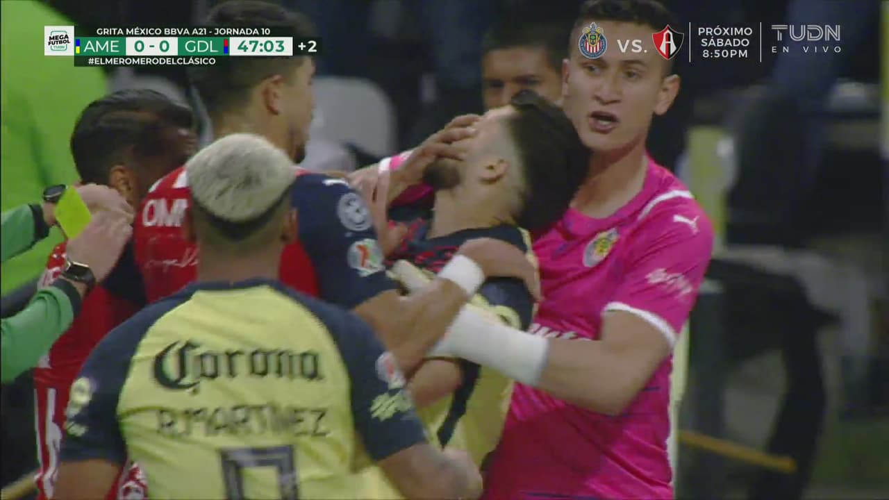 Pero ya en la parte final de la primera mitad otro incidente entre Miguel Ponce y Henry Martín, quienes se encararon y terminaron con un conato de bronca del que el americanista terminó más afectado.
