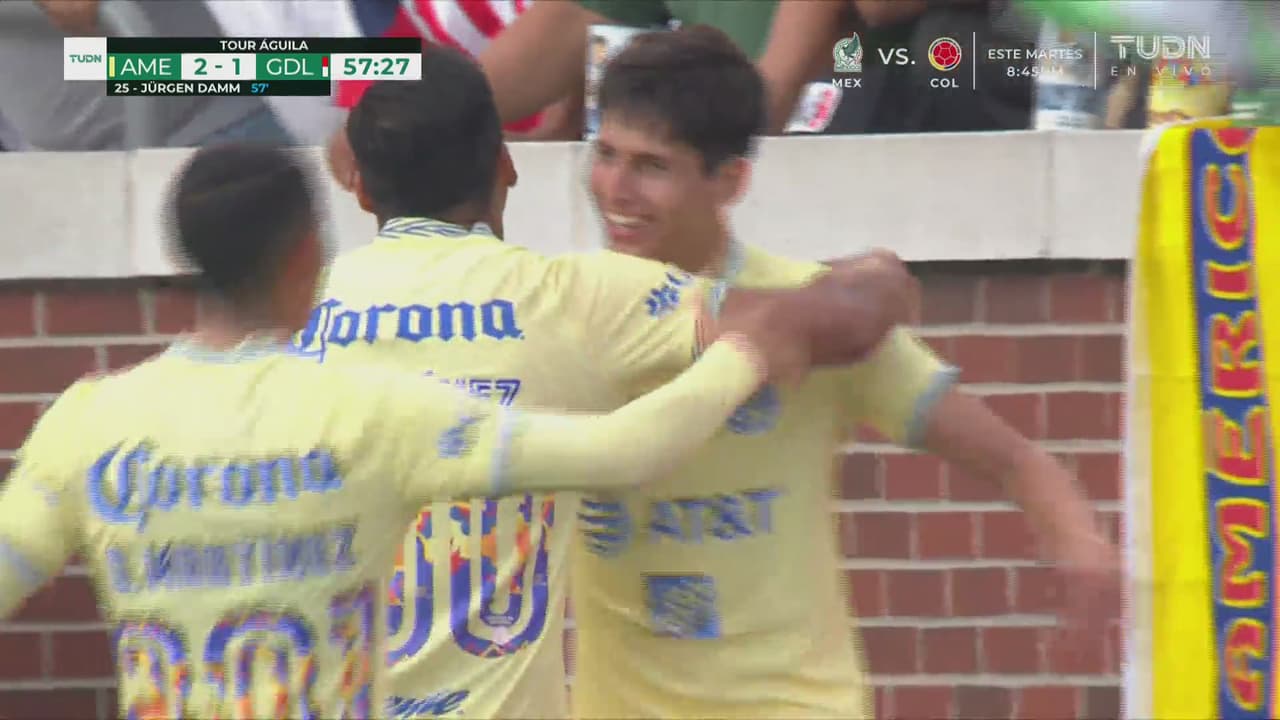 Chivas se acercó para intentar dar la voltereta en el marcador pero el segundo tanto cayó del lado de los azulcrema ya para el segundo tiempo. Jürgen Damm se lució con gol desde fuera del área después de un lujo de Layún para que América retomara una ventaja que nunca más perdería.