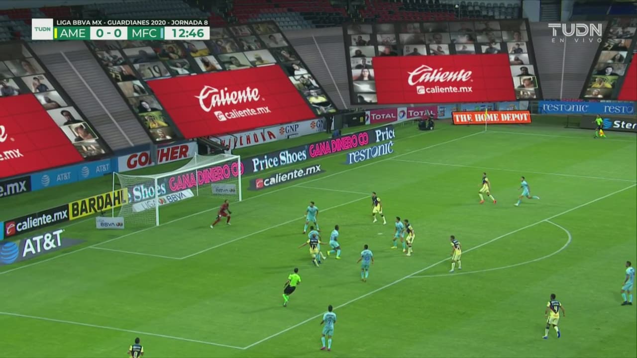 La respuesta del América vino en los pies de Sebastián Córdova pero el canterano no pudo cambiar ese zapatazo por gol para el equipo de Coapa que veía cómo se desperdiciaba una jugada de gol.