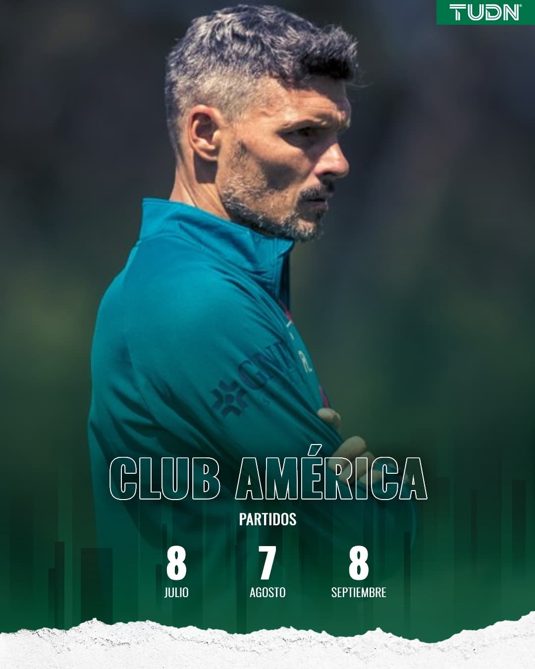 Julio y septiembre son los meses más apretados para el América, con ocho encuentros, seguido por agosto, con siete partidos.