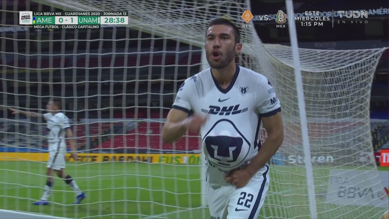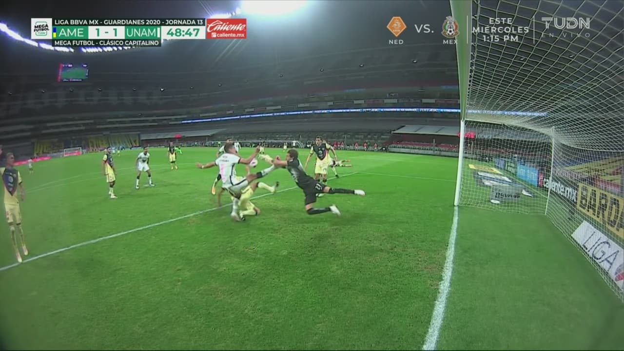 Al 16’, Henry Martín, el hombre que salió de inicio de manera improvisada, ya que no estaba contemplado por Miguel Herrera en el cuadro titular ante Pumas, estuvo cerca de marcar un golazo de chilena, tras control de la pelota con el pecho.