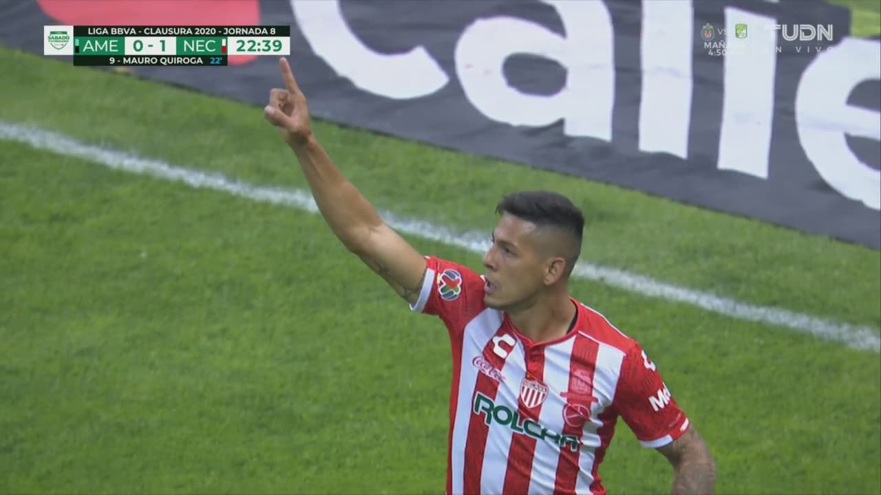 El ‘Comandante’ Quiroga volvió a poner orden en el terreno de juego al 27’ y marcó su doblete con un remate al ángulo superior derecho de las redes de Ochoa, que mandó al conjunto azulcrema en la lona.