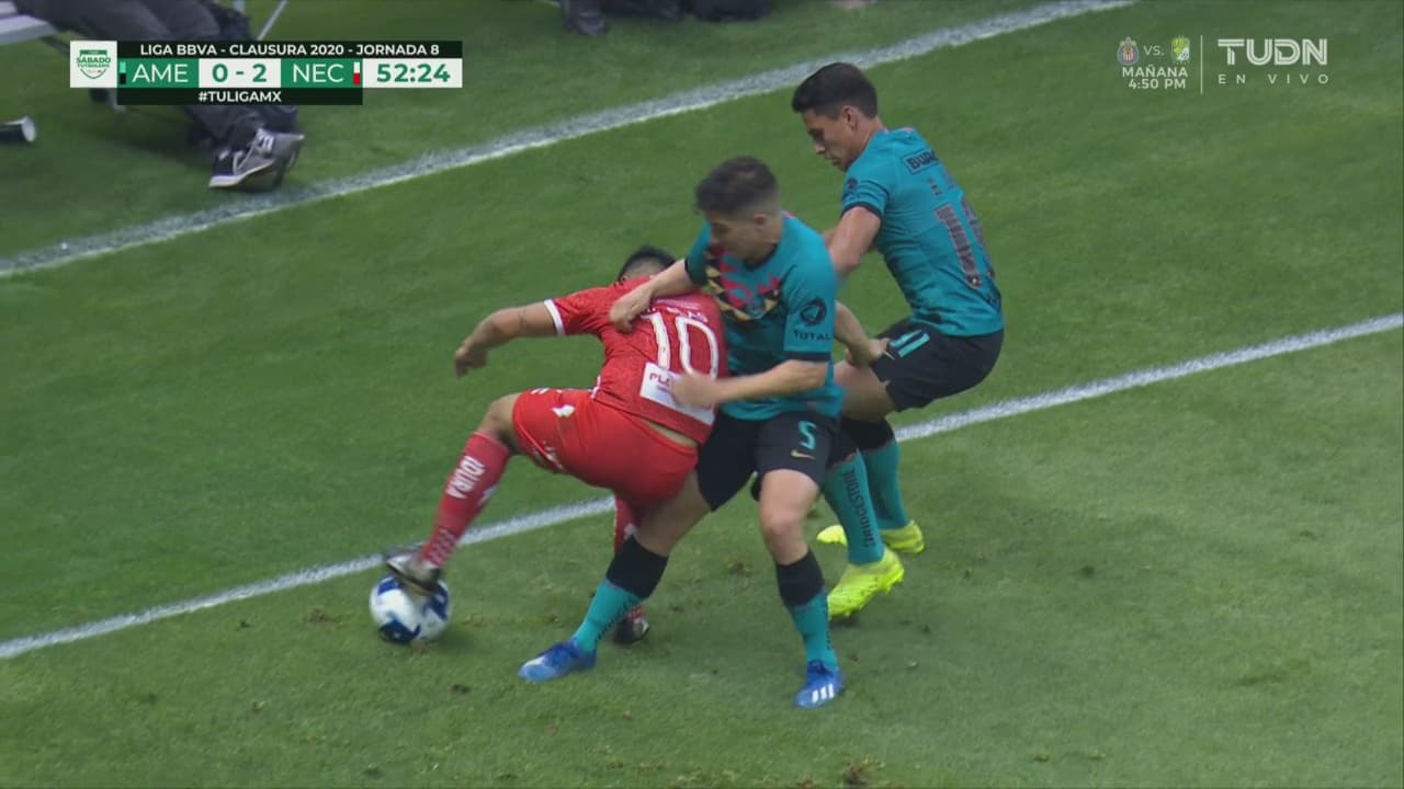 Apenas a los 16 minutos desarrollados del cotejo, el defensa americanista, Bruno Valdez, se vio expulsado con la tarjeta roja después de una dura plancha sobre Maxi Salas que dejó en desventaja a los dirigidos por Miguel ‘Piojo’ Herrera.
