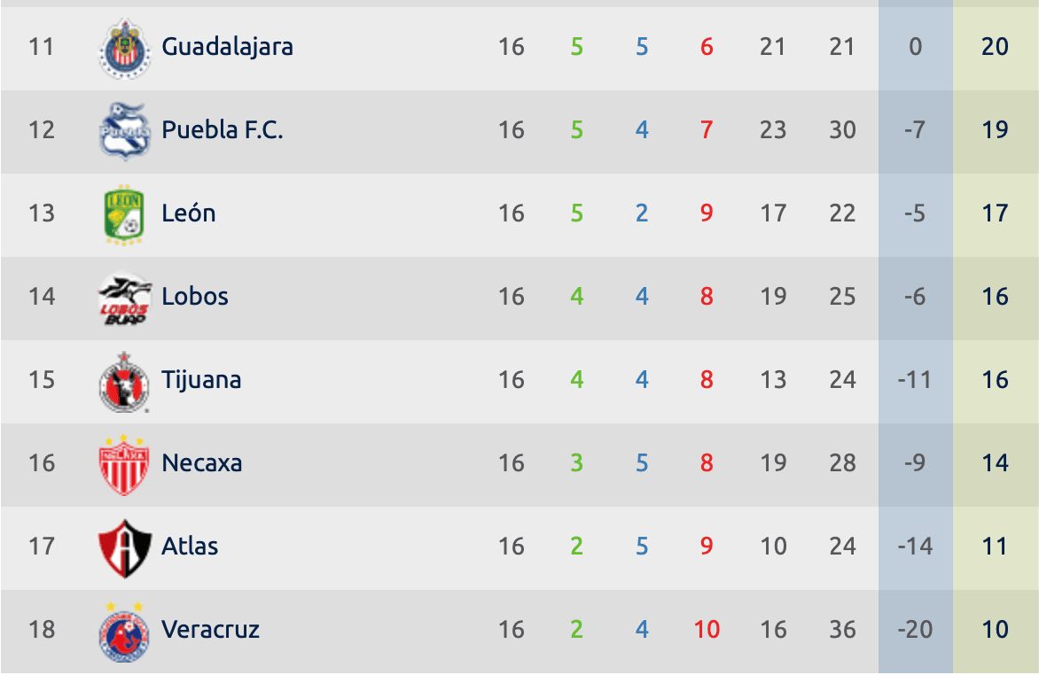 Chivas y Puebla son dos equipos que llegaron a la jornada 16 con mínimas aspiraciones; sin embargo, ambos se unieron a los equipos eliminados. El Rebaño Sagrado cumplió con su papel y venció en su visita a León, pero no le alcanzó y ahora quedó sin posibilidad de pelear por el título. En el caso de la Franja, cayó por goleada de 6-1 ante Tigres.