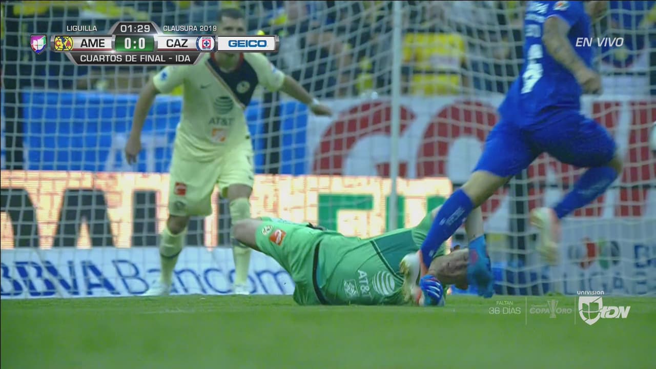 El arranque fue intenso y desde los primeros instantes la polémica se hizo presente, cuando Agustín Marchesin salió a cortar un balón que Orbelín Pineda conducía dentro del área y lo derribó, en la segunda jugada, el esférico le quedó a Y oshimar Yotún y el guardameta de las Águilas lo derribó con el brazo izquierdo en un claro penal; sin embargo, el árbitro decidió no marcar penal.