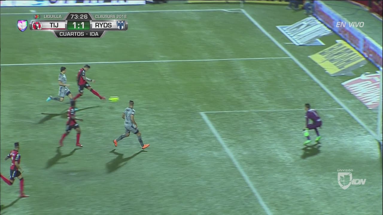 El árbitro invalidó la jugada del zurdazo del argentino por una falta de Miler Bolaños. Sufre el Monterrey.